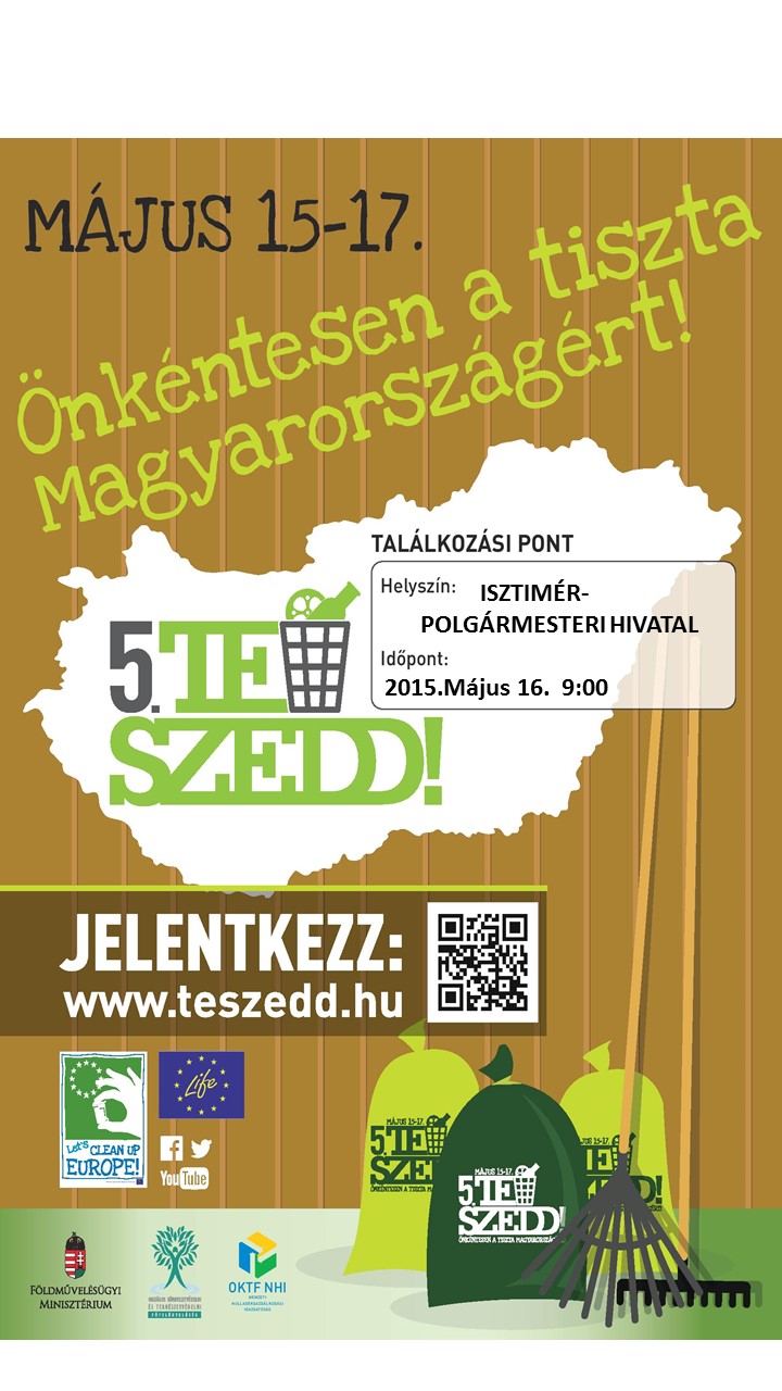 Az Isztimér Önkéntes Tűzoltó és Védő Egyesület 2015-ben is csatlakozott a "TeSzedd - Önkéntesen a tiszta Magyarországért" programhoz. 2015. május 16-án 9 órakor gyülekező a Polgármesteri Hivatalnál.